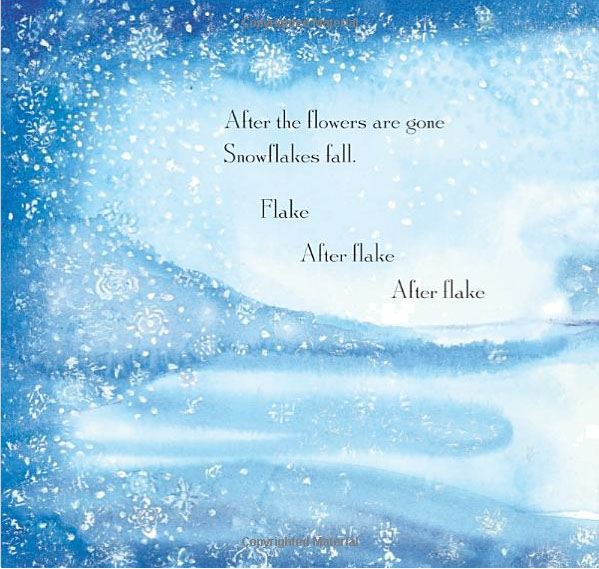“Snowflakes Fall”, écrit par Patricia MacLachlan et illustré par Steven Kellogg (Random House Books, 2013) utilise le cycle des saisons pour parler du thème de la mort et du renouveau. Il a été écrit pour les familles touchées par l’événement tragique de la Sandy Hook School, où une fusillade eut lieu en 2012.