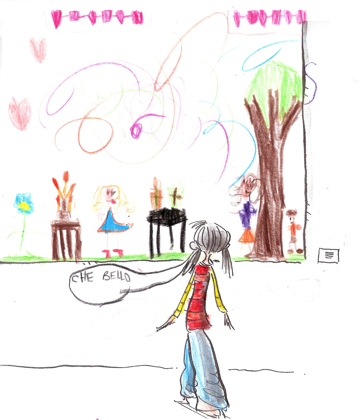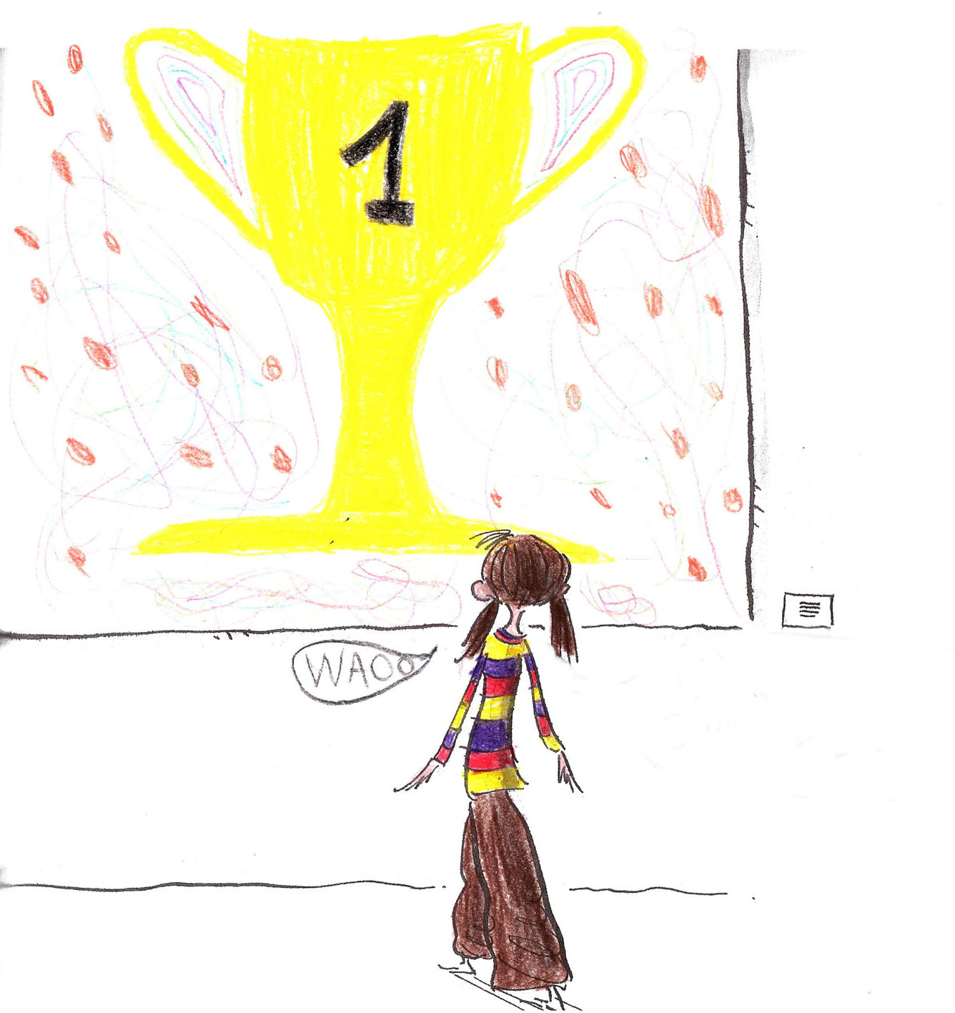 Inspirez-vous des illustrations du livre pour faire dessiner vos enfants ! Voici de belles créations : à partir d’une photocopie de la page 18 du livre, les enfants ont imaginé ce qui pourrait être peint sur la toile vide.